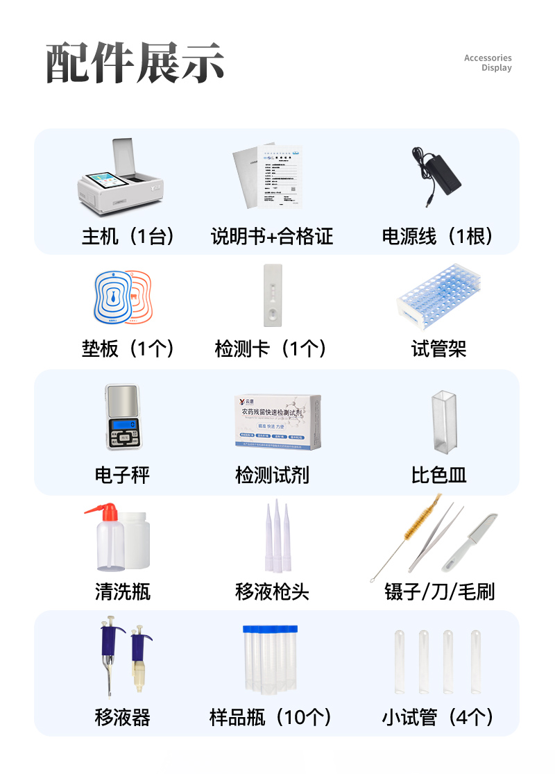 检测项目: 可快速检测奶粉、牛奶及乳制品中的蛋白质,仪器预留其他项目检测程序和端口,根据日后需求可方便的自主增加检测项目。 技术指标: 仪器采用台式一体化系统检测技术,将分光光度模块、新型农残检测模块、数字化管理模块、无线通讯模