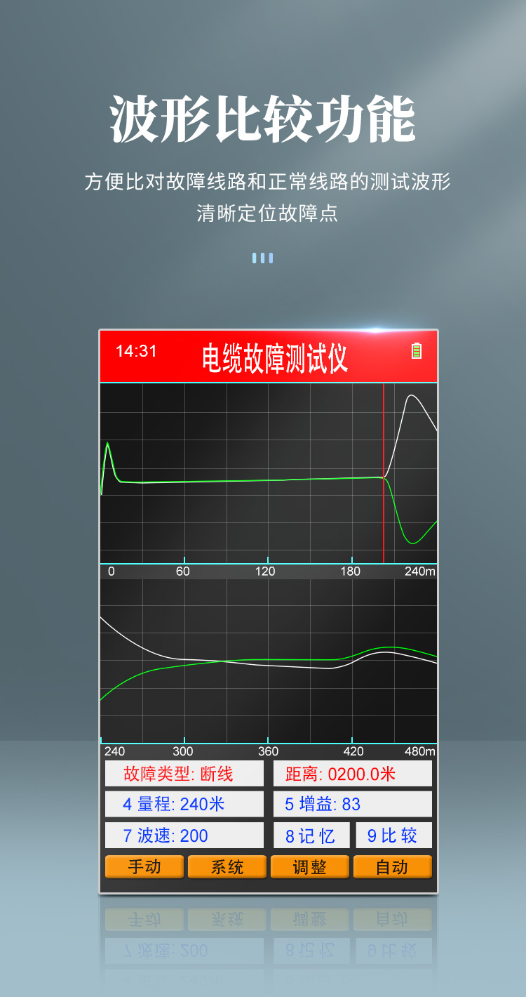 | 1)DAGC(数码增益自动控制)系统:可数字调节增益。杜绝原有同类型仪器因电位器旋钮的原因造成波形的失真。也可做纯线形调节,有利于人工测试。 | 2)数字波形自动识别技术:依靠机器自动识别人工难以判断的波形。 | 3)采用ARM CPU配合FPGA技术,可快速进行各种复杂运算、准确判断故障波形。 | 4)波形比较功能,方便比对故障线路和正常线路的测试波形,清晰定位故障点。 | 5)大屏幕彩色液晶显示,人性化界面菜单设计,快捷数字按键,方便使用人员操作。 | 6)高能量锂电池,使用时间可达十小时(配合专用充电器充电)。 |
