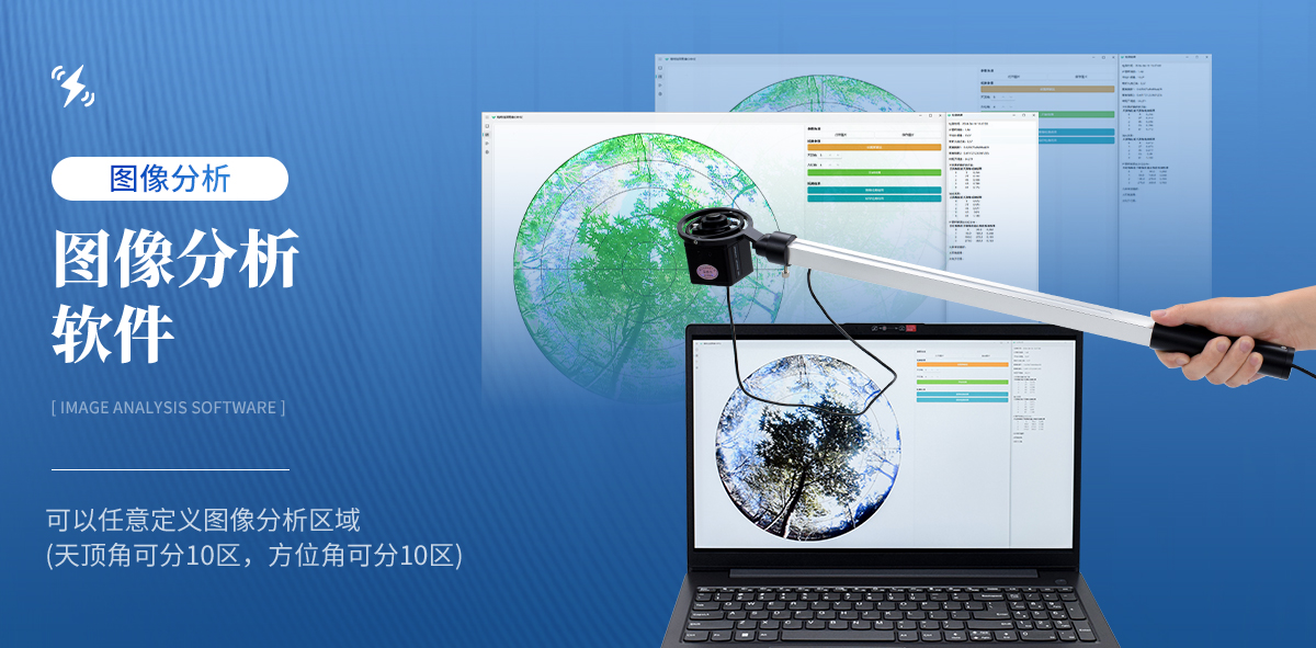 仪器介绍: 植物冠层图像分析仪用于各种高度植物冠层的研究,利用鱼眼镜头和CCD图像传感器获取植物冠层图像,通过专用分析软件,获得植物冠层的相关指标和参数。利用鱼眼镜头成像测量植物冠层数据,只操作一次即可,简化了传统测量方法要一天定点多次测量的繁复工作,而且利用图像法测量冠层可以主动避开不