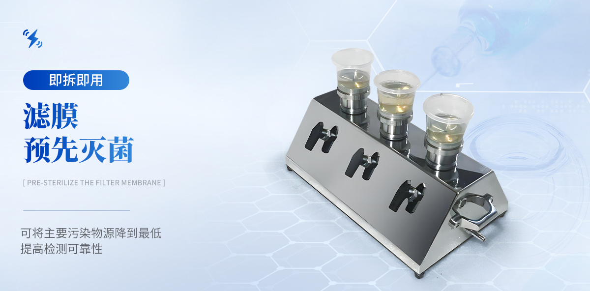 微生物限度专用检查仪,基于薄膜过滤法的原理,与微生物培养器(S60)配套使用,通过液泵的抽滤作用,在系统内部形成负压,供试品在压差作用下被过滤,可能存在的微生物被滤膜截留,通过冲洗滤膜(如有必要),除去抑菌成分,然后反浇培养基进行培养,已检验供试品含菌量。主要用于各类水质、药品、食品等介质中微生物检测及实验室中进行除菌、除微粒等。具有操作过程不易受到污染、易于清洁等特点。