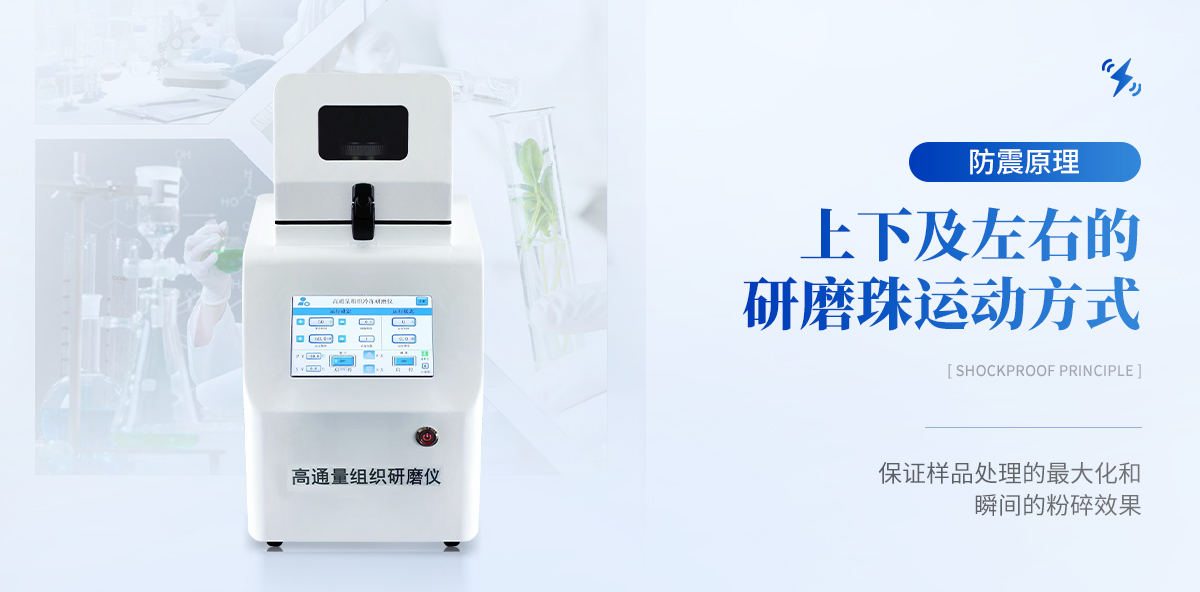 高通量组织研磨机采用了特殊的垂直上下震动模式, 通过研磨珠(氧化锆、钢珠、玻璃珠、陶瓷珠)的高频往复振动、撞击、 剪切。快速的实现目的。使研磨的样品具有更加充分、更均匀、样品重复 性更好、样品之间没有交叉污染。