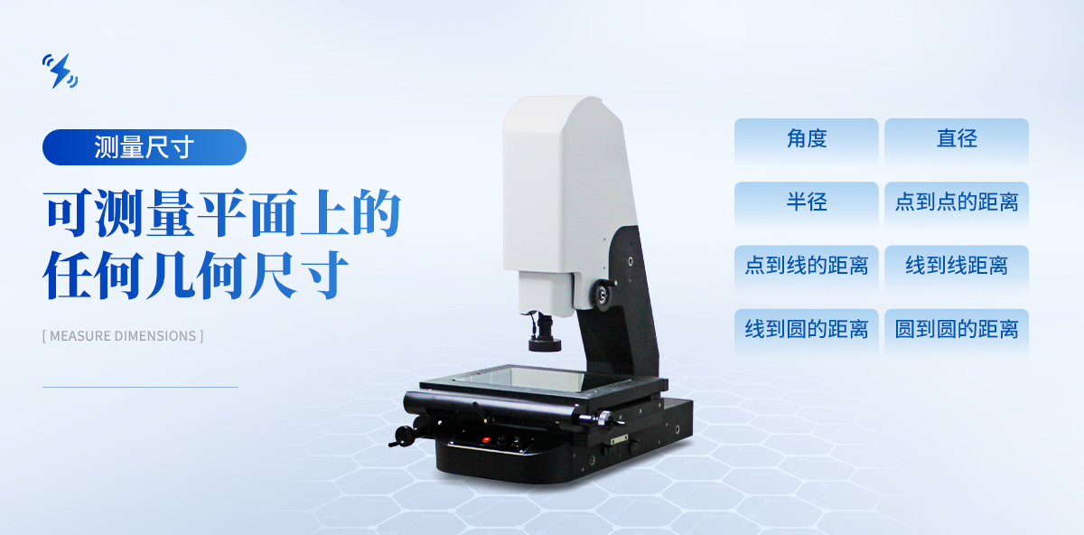 可测量平面上的任何几何尺寸(角度、直径、半径、点到点的距离、点到线的距离、线到线距离、线到圆的距离、圆到圆的距离等等);