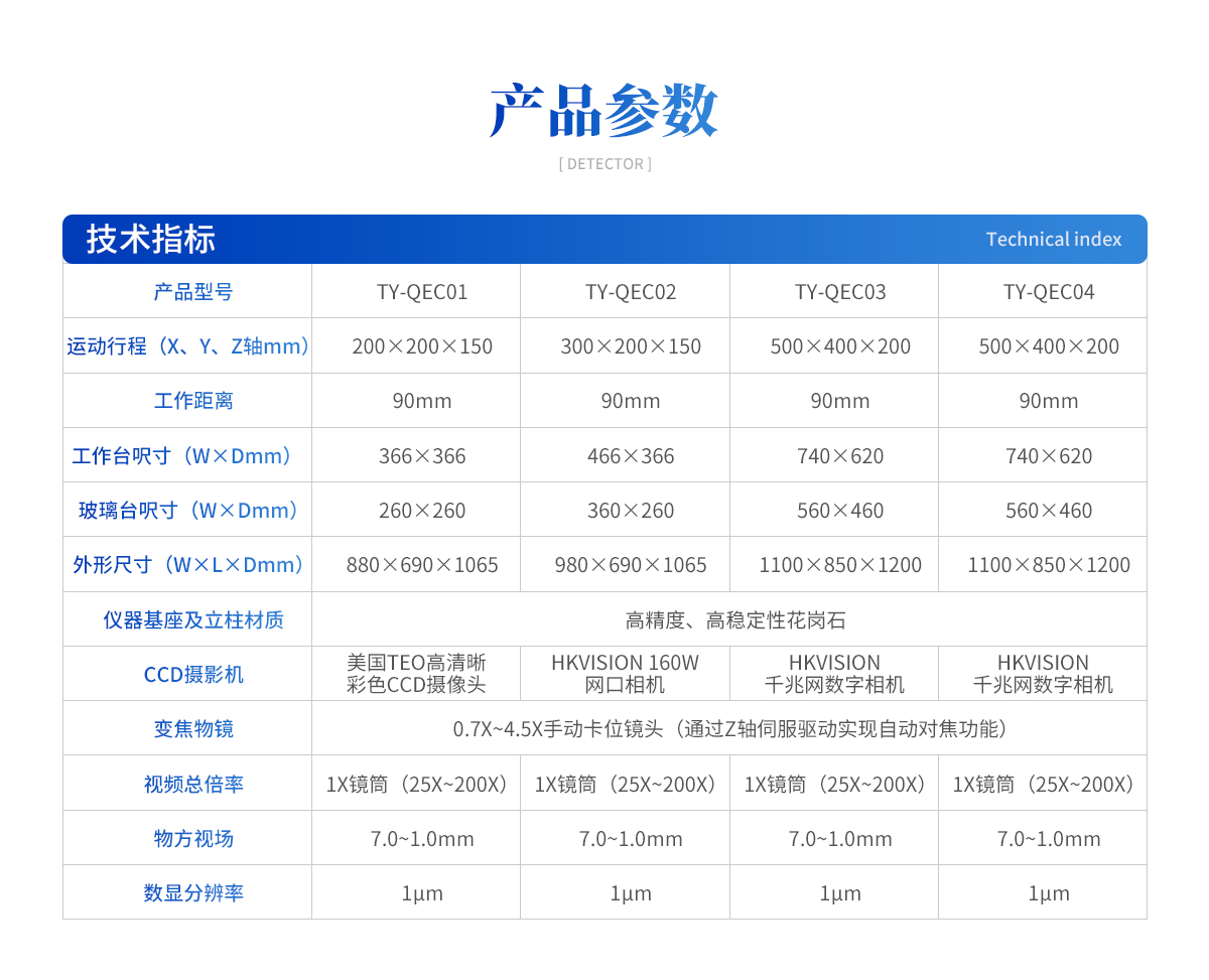 | 高稳定性高精度花岗石材质 | HIKVISION 160W千兆网数字相机 (海康HIKVISION) | 0、7~4、5 X手动卡位镜头(莱斯) | 高精度位移传感电子尺,分辨率:1µm (精微) | 咸阳蓝博P级精密V型导轨(LB) | XYZ轴TBI精密滚珠丝杆(200mm) | 4000P伺服电机(UWC) | 多功能一体化集成运动控制盒(UWC) | 四环八分区表面光源、单颗绿色LED底光源 | DT-3 | INS 全自动影像测量软件 (INS) | INS-C | DTW定制/td> | AC :110/220V | 自动影像仪器专用电脑+19、5”显示器 |