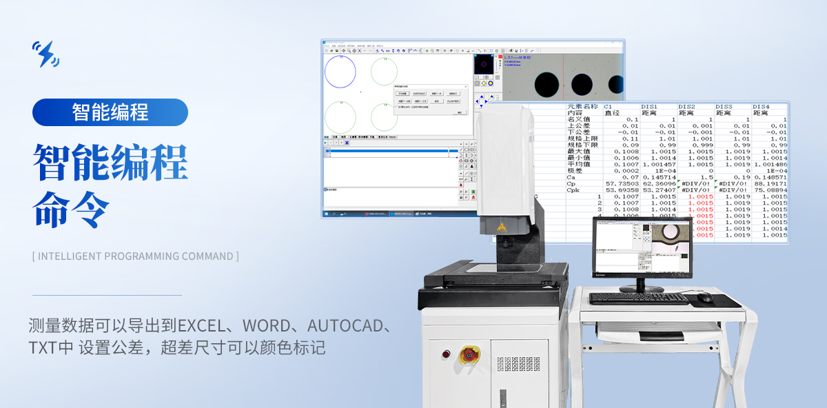 测量数据可以导出到EXCEL、Word、AutoCAD、TXT中。设置公差,超差尺寸可以颜色标记,也可以输出语音报警。