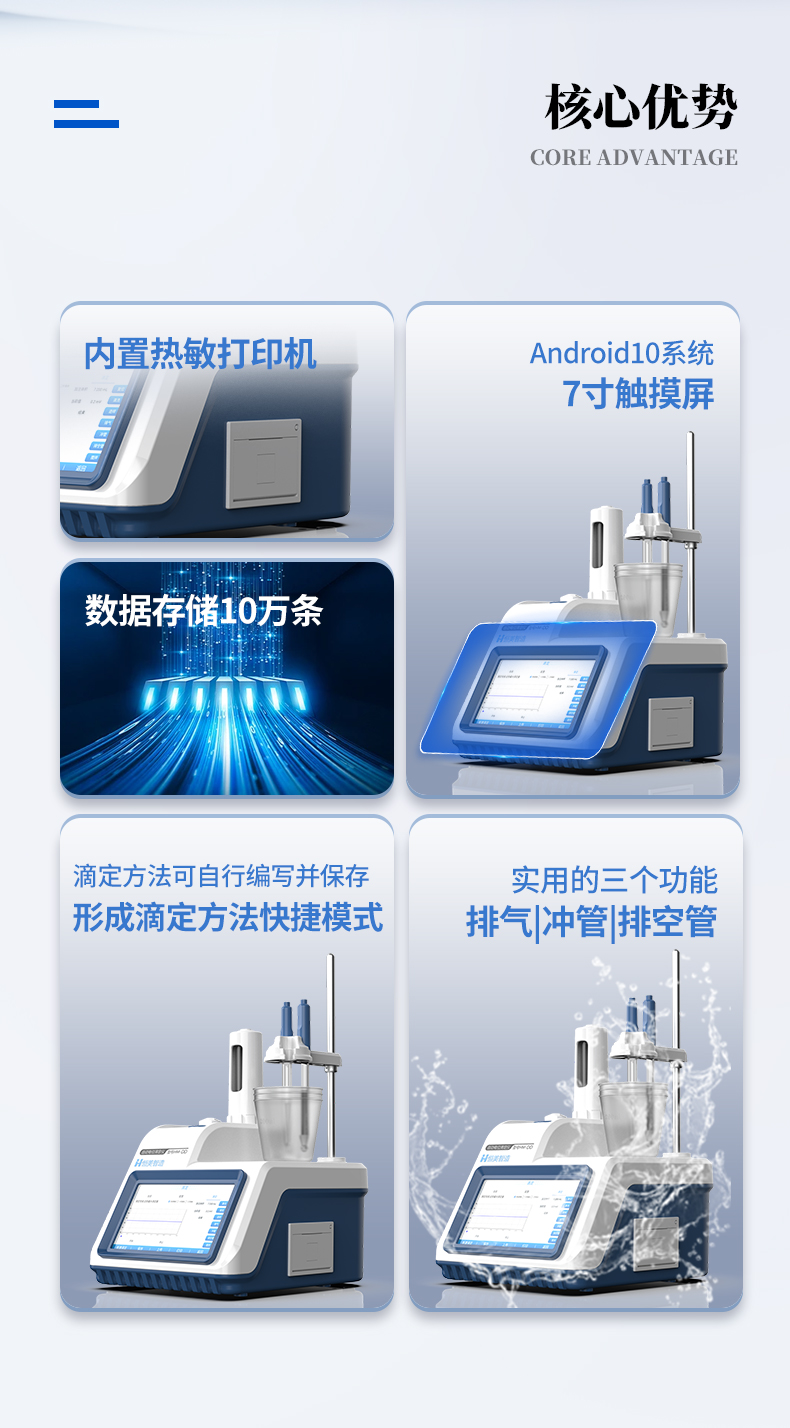 4、支持动态滴定、等量滴定、手动滴定的滴定方式,可预设滴定终点或自动识别终点滴定,方便用户根据样品特性选择**滴定工作流程;