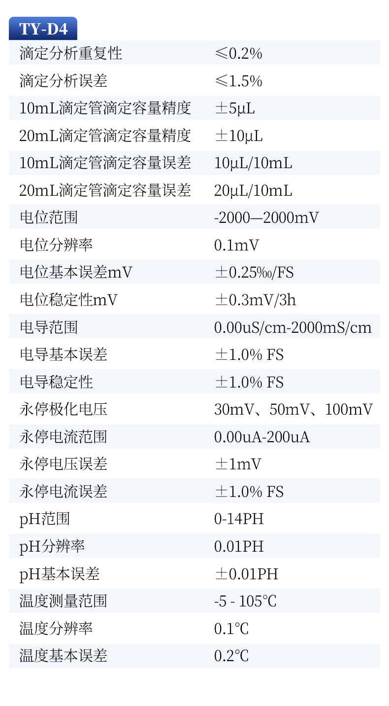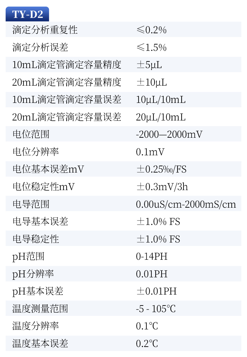 | 滴定分析重复性:≤0.2% | 滴定分析误差:≤1.5% |