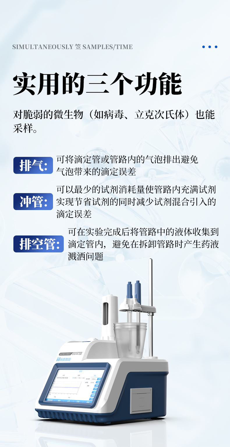 (2)冲管,可以*少的试剂消耗量使管路内充满试剂,实现节省试剂的同时减少试剂混合引入的滴定误差;