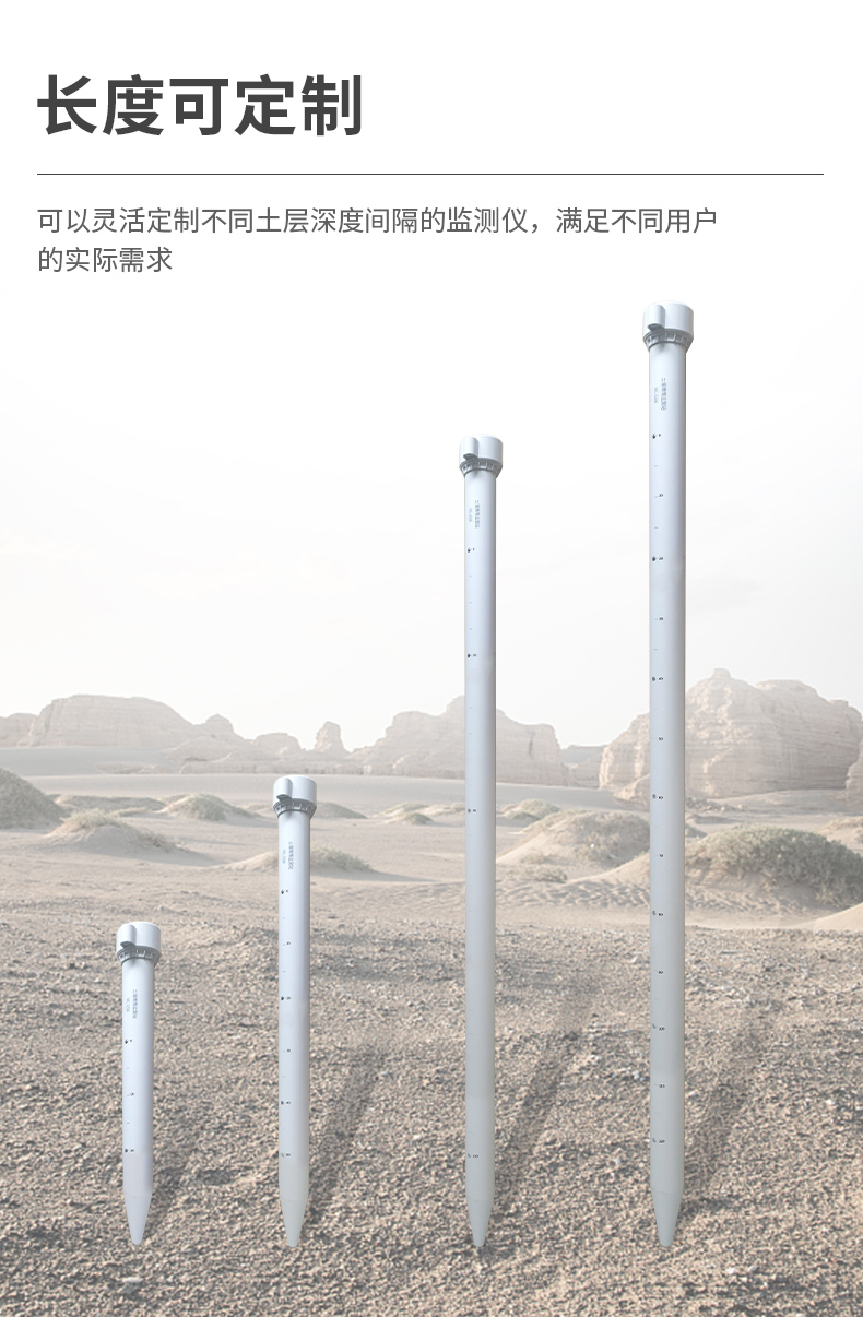 管式土壤墒情监测仪是一款基于介电常数原理而研发的传感器,可以针对不同土层的水分、温度含量进行快速、准确、全面监测。该传感器监测层数支持定制,**可测三层土壤温湿度,**可测十层土壤温湿度。