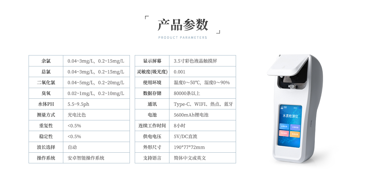 适用于饮用水、自来水、医疗废水、工业污水、河流监测、游泳场馆、水源保护、生产监测、科研实验等。