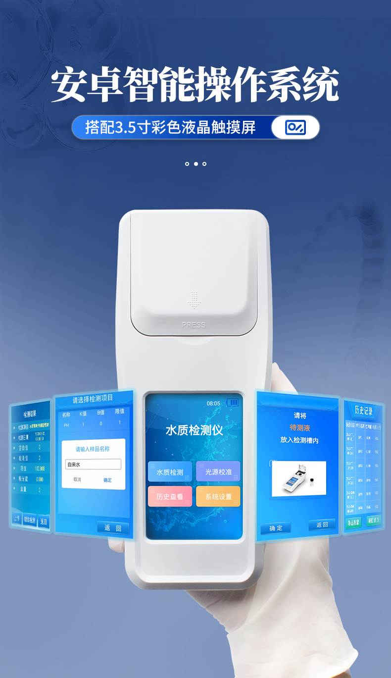| 1、安卓智能系统,操作更佳简便快捷; | 2、配置云监控平台,检测结果可直接无线传至平台,进行水质长短期分析,辅助管理; | 3、内置操作流程、操作简单、无需培训、直接上手; | 4、检测速度更快,现场读取数据; | 5、便携式体积小,重量轻,方便户外检测; | 6、外形小巧美观,工作稳定免维护,具有较好的性价比; | 7、采用进口冷光源,光学性能稳定,寿命长达10万小时; | 8、交直流两用,内置充电锂电池,环保耐用可支持连续室内外工作。 |