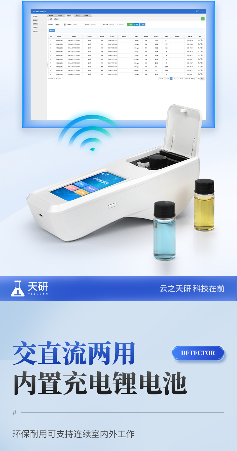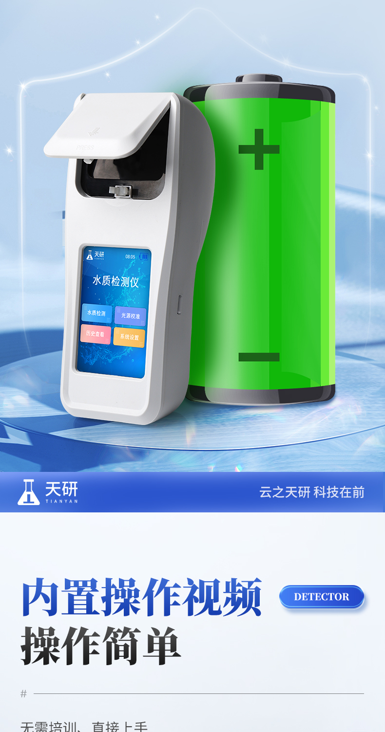 | 1、安卓智能系统,操作更佳简便快捷; | 2、配置云监控平台,检测结果可直接无线传至平台,进行水质长短期分析,辅助管理; | 3、内置操作流程、操作简单、无需培训、直接上手; | 4、检测速度更快,现场读取数据; | 5、便携式体积小,重量轻,方便户外检测; | 6、外形小巧美观,工作稳定免维护,具有较好的性价比; | 7、采用进口冷光源,光学性能稳定,寿命长达10万小时; | 8、交直流两用,内置充电锂电池,环保耐用可支持连续室内外工作。 |