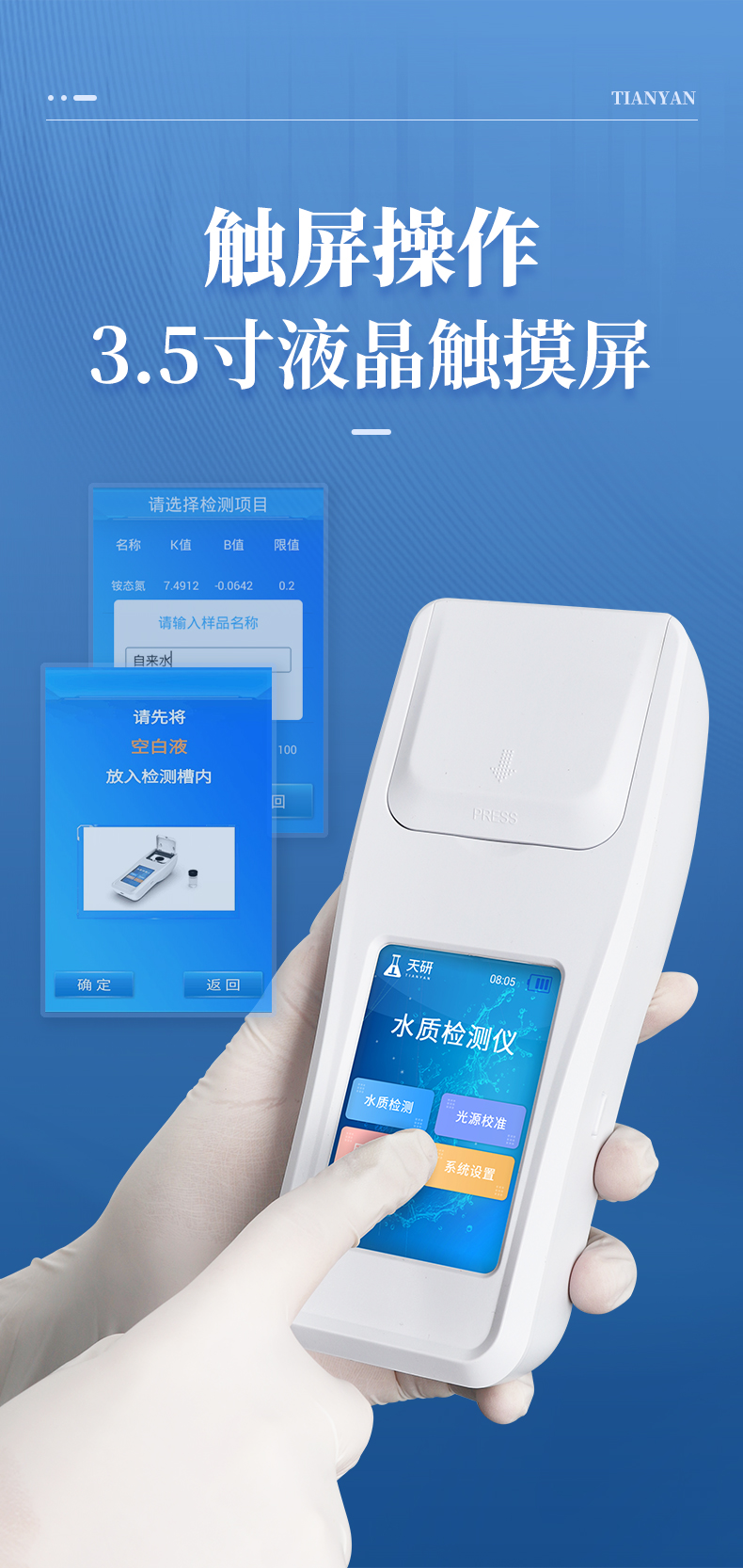 | 分辨率:0.01mg/L; | 波长选择:自动; | 操作系统:安卓智能操作系统; | 显示屏幕:3.5寸彩色液晶触摸屏; | 灵敏度(吸光度):0.001; | 使用环境:温度0~50℃,湿度0~90%; |