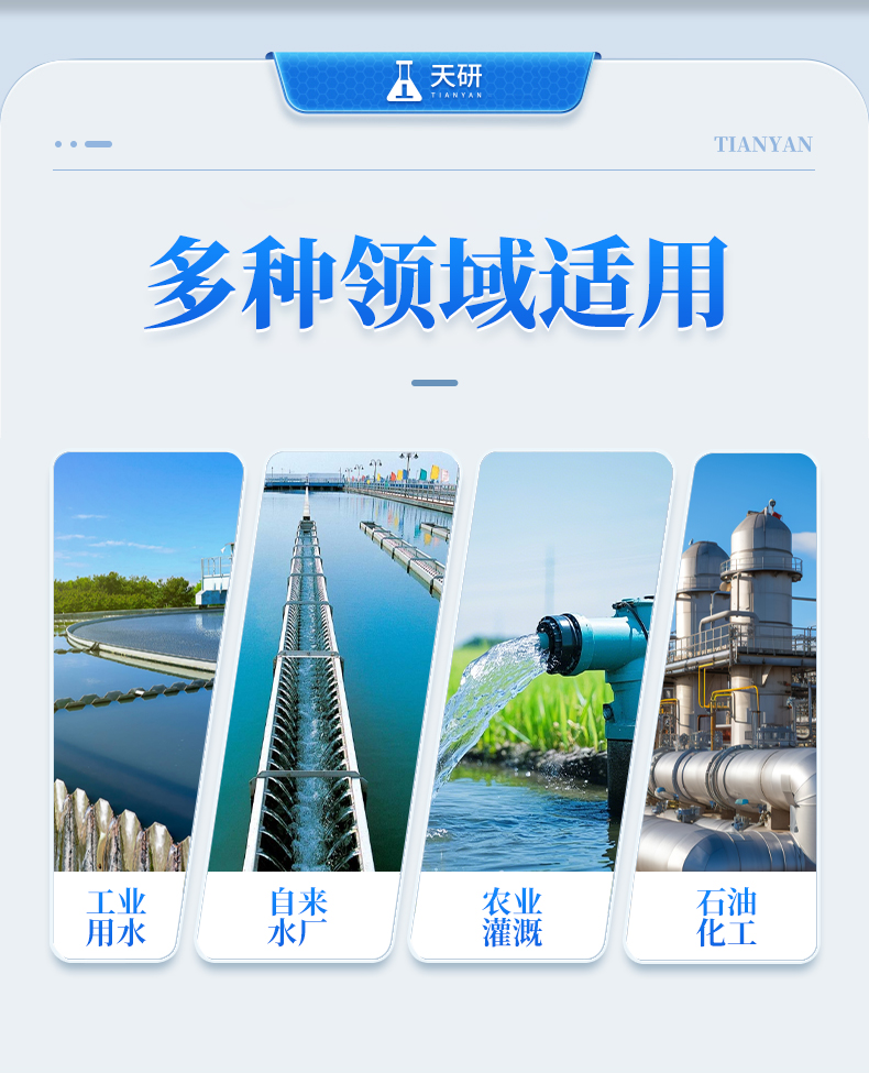 可以广泛应用于锅炉水、工业用水、自来水厂、生活饮用水、石油化工、农业灌溉、饮料食品制造业等行业。