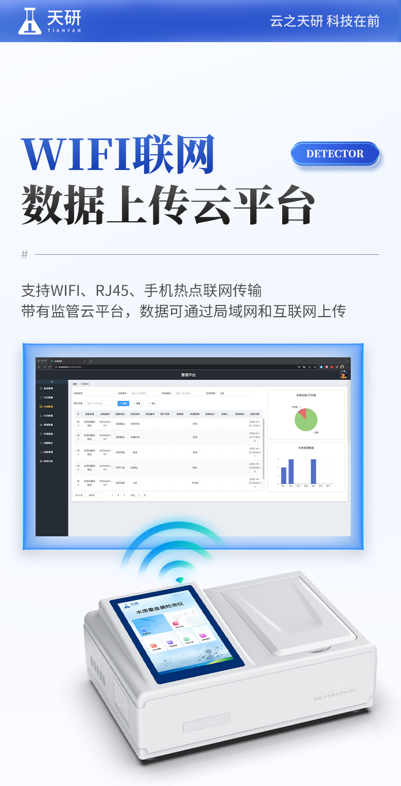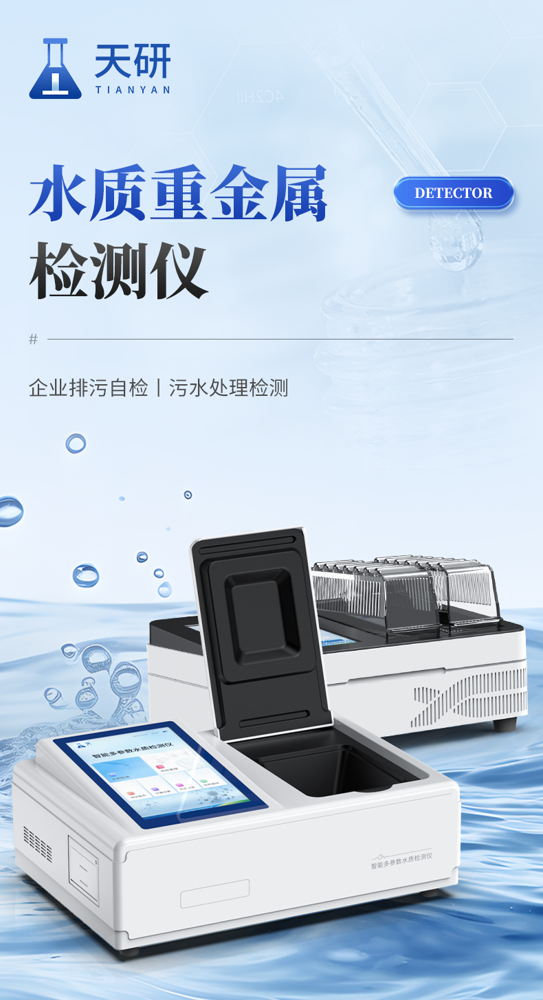 一、设备简介:多参数水质重金属检测仪是完全参考国家标准、环境标准等相关标准设计制造,适用于国内外众多检测标准。 主要检测水质六价铬、总铬、铅、镉、汞、砷、铜、总铜、锌、总锌、铁、总铁、镍、总镍、锰、总锰、钛、钒、银、铝、锡、铍、钡、锑、钴等重金属含量指标;本仪器兼具智能数据分析功能,图表、列表显示数据