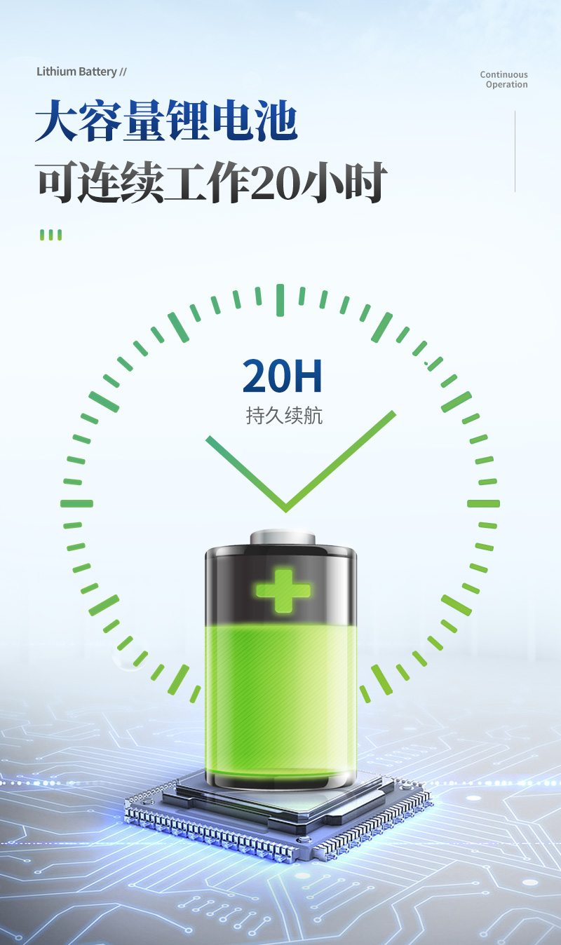 | 工作环境:温度20℃—50℃,相对湿度:0-100%(没有水汽凝结) | 电源:DC7.4V锂电池,可连续工作7-9小时 |