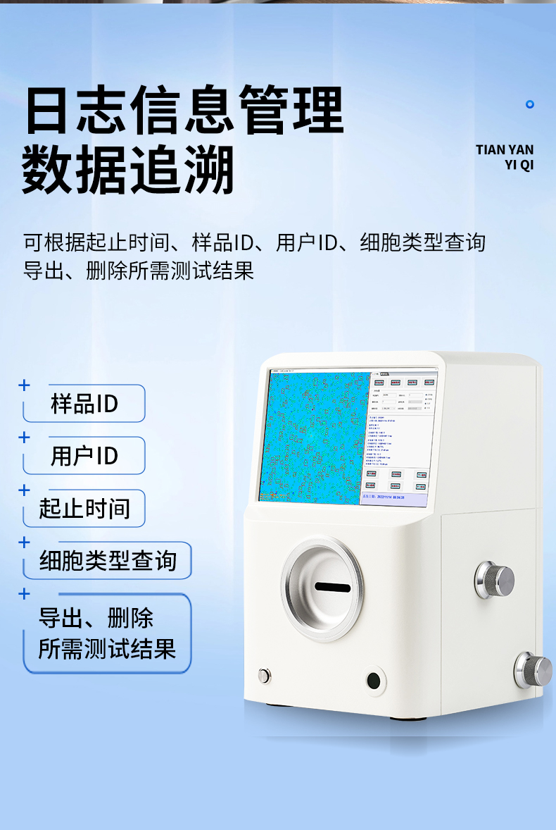11、模拟网格:可显示模拟网格,实现人工与仪器计数比对; 12、图像信息:展示细胞原始图像/缩略图、识别图像、细胞直径分布图; 13、存储功能:细胞图像储存位置可选,可随时调出; 14、日志管理:支持按条件查询、导出、删除测试结果,查看操作历史; 15、密码保护:可设置独立账号ID及密码进行管理; |