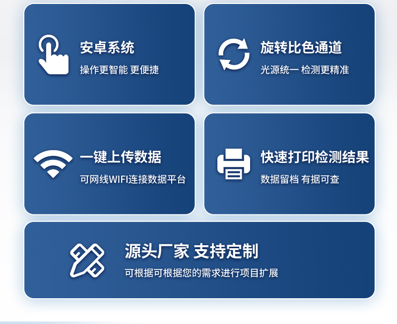 | 实用性 —— 可根据环境检测需求设定上下限值,做到数据快速评估预警,表面洁净度快速筛查。 | 速度快 —— 常规培养法18-24h以上,而ATP只需要十几秒钟 . | 可行性 —— 微生物数量与微生物体内所含ATP有明确的相关性。 通过检测ATP含量,可间接得出反应中微生物数量 | 可操作性 —— 传统培养方法需要在实验室由经过培训的技术人员进行操作;而ATP快速洁净度检测操作非常简便,只需简单的培训即可由一般工作人员进行现场操作。 | 体验更好 —— 试子套管采用插拔式灵活设计,可定期清洗长期使用,延长仪器寿命。 |