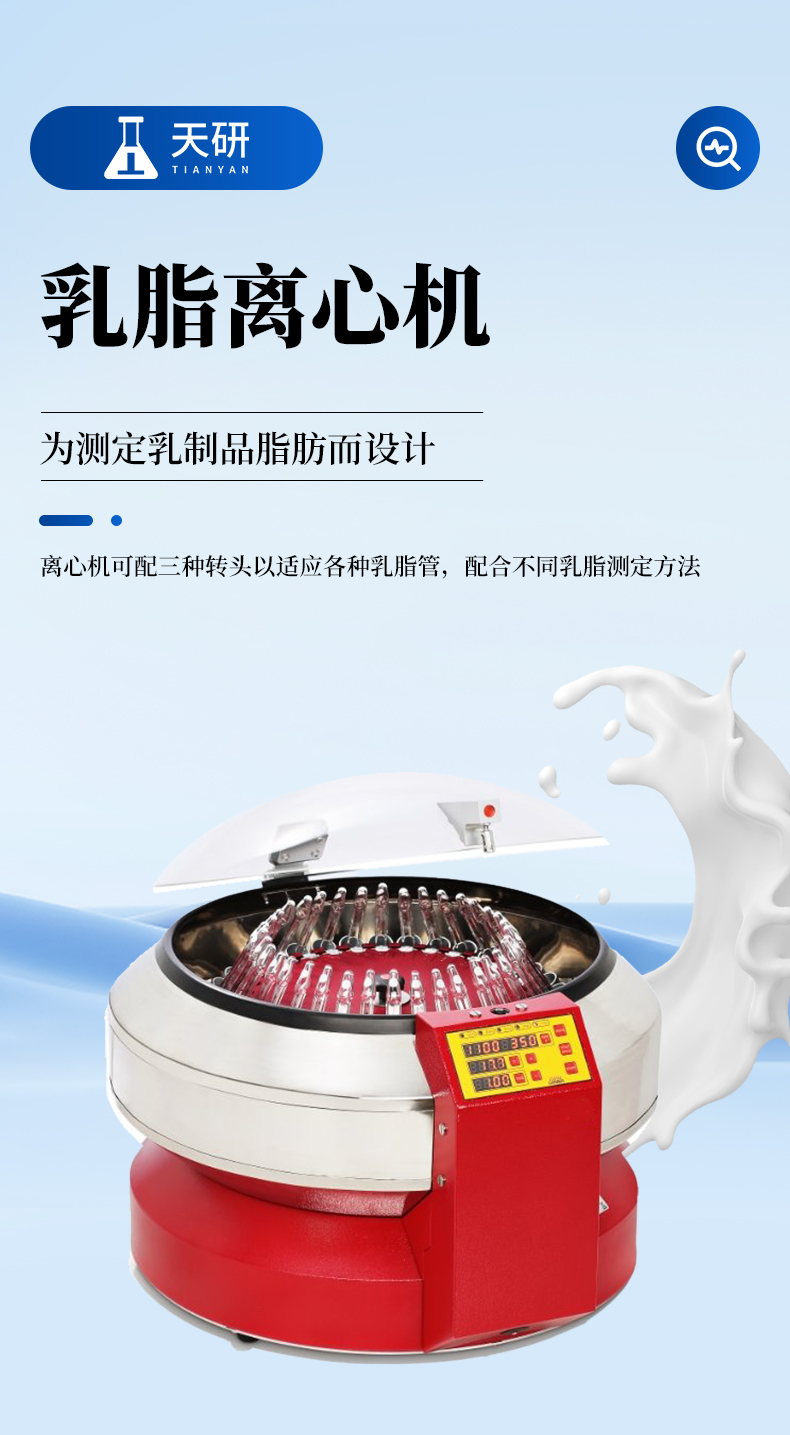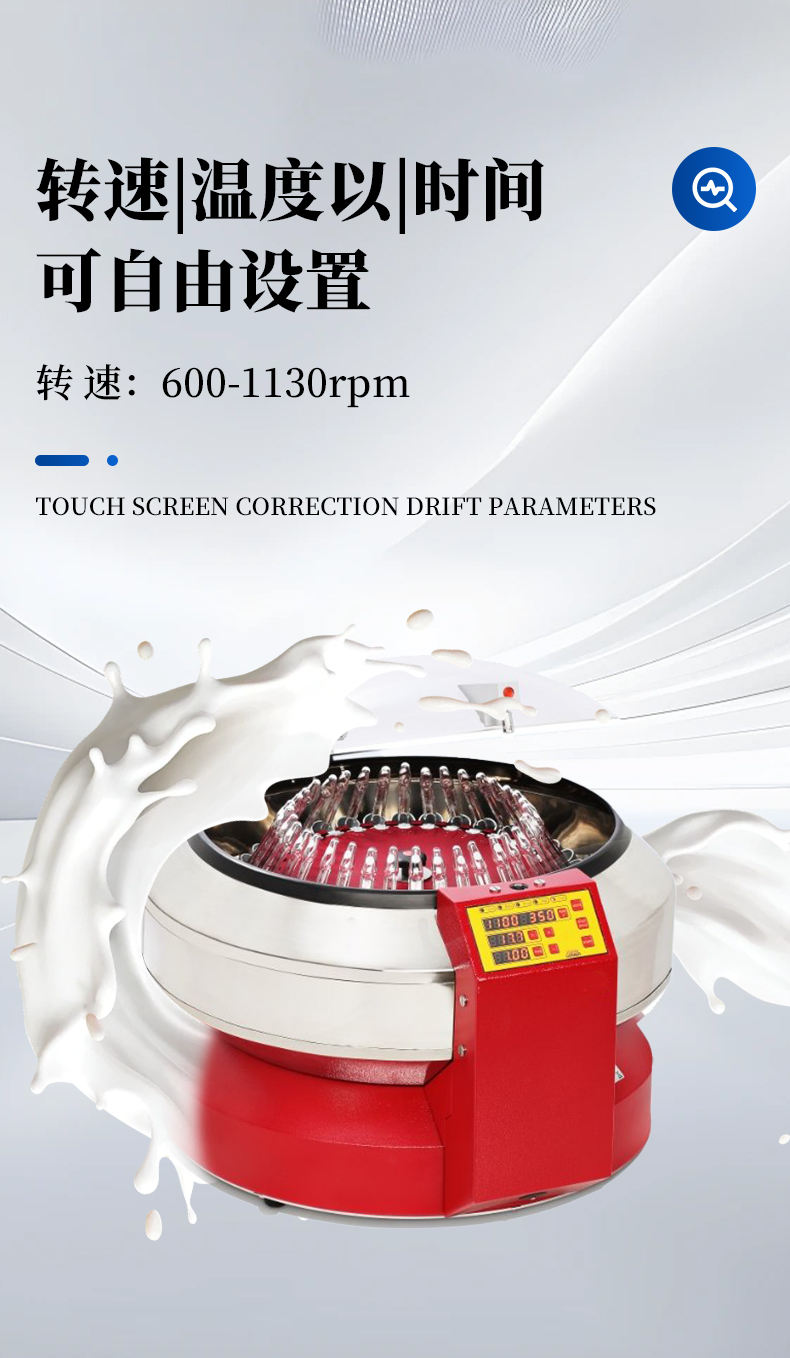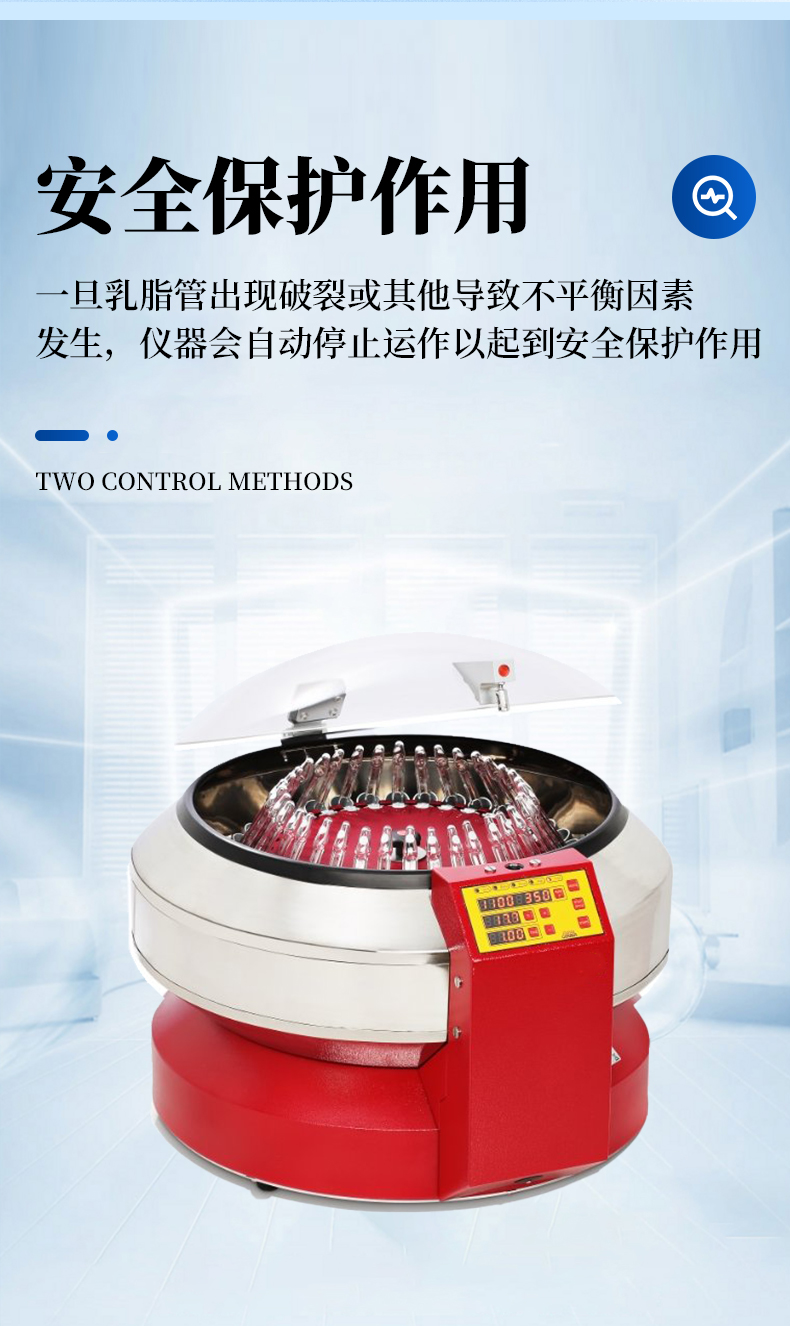 SuperVario-N专为测定乳制品脂肪而设计。离心机可配三种转头以适应各种乳脂管,配合不同乳脂测定方法。带有加热功能,保证乳脂管在离心过程中温度保持在50°C以上这不但能减少样品水浴的时间还使测试结果更加可靠。一旦乳脂管出现破裂或其他导致不平衡因素发生,仪器会自动停止运作以起到安全保护作用。离心机运作无噪音无振动,带有上盖内部上锁功能,更加安全可靠。