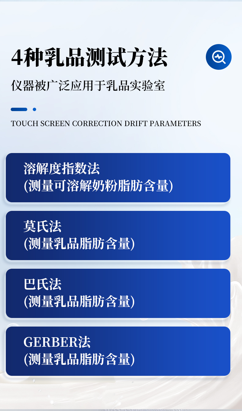 SuperVario-N被广泛应用于乳品实验室,它可以自由地设置转速,温度以及时间来满足4种不同的乳品测试方法,分别是Gerber法(测量乳品脂肪含量):巴氏法(测量乳品脂肪含量):莫氏法(测量乳品脂肪含量); 溶解度指数法(测量可溶解奶粉脂肪含量)。