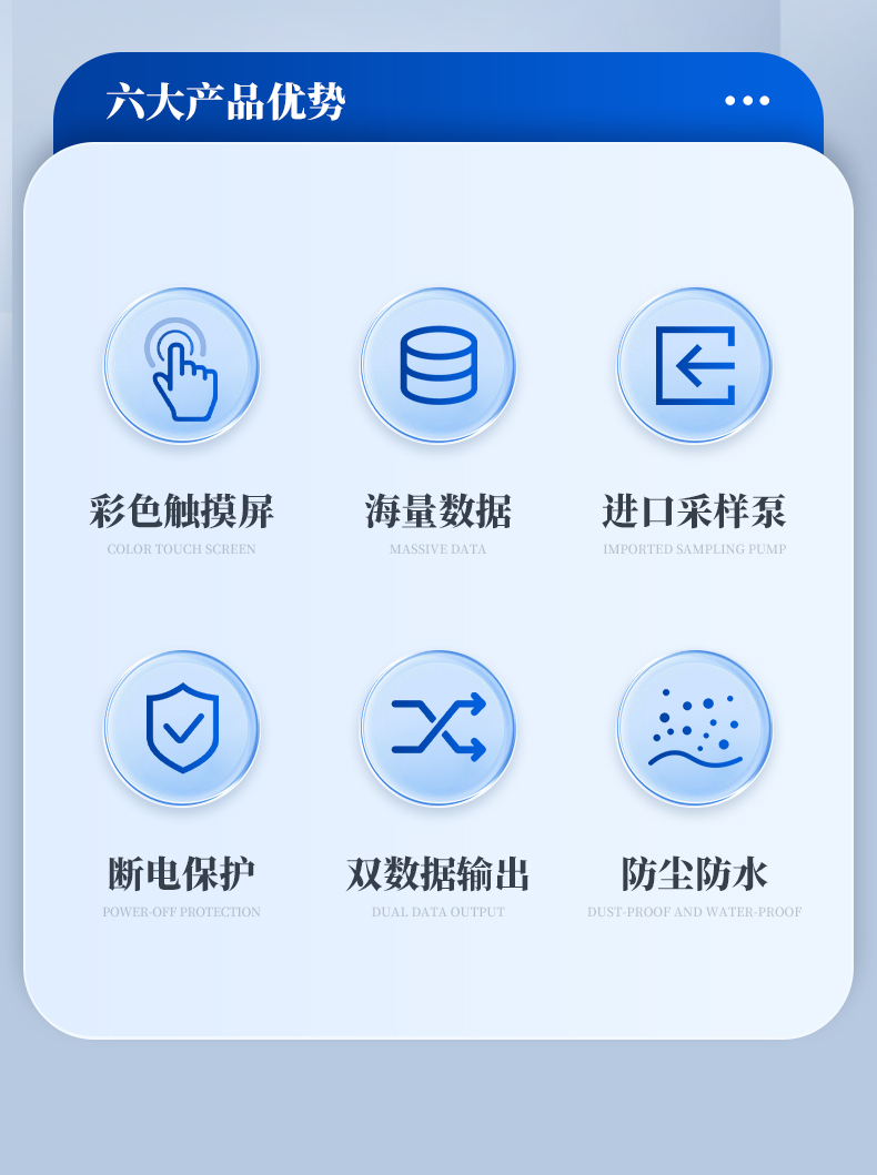 | 采样流量范围(可选) | 0~1L/min、0.1~1.5L/min、0.1~3L/min、1~5L/min |