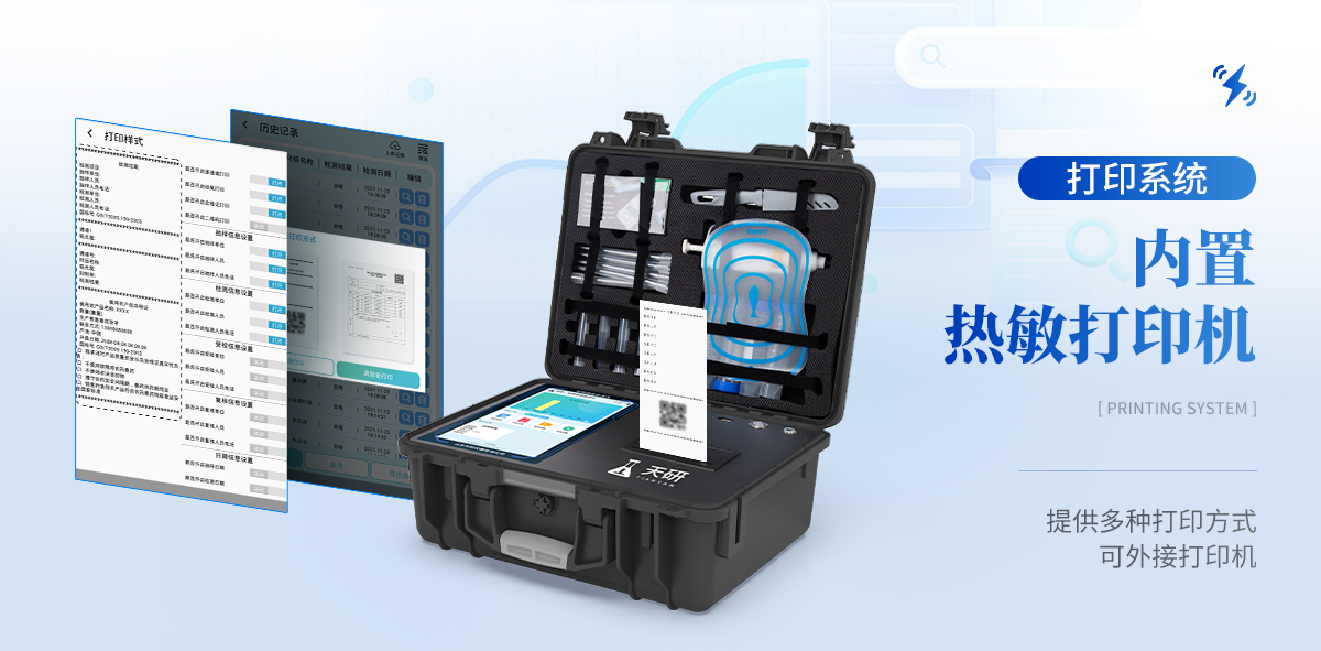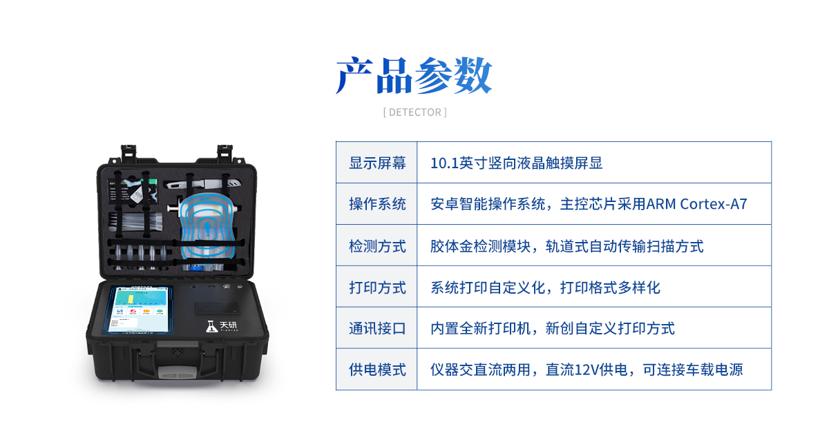 3、一体化便携式快检设备,采用交直流两用供电方式,可连接车载电源,配备6ah大容量充电锂电池,可以满足现场及流动检测使用的需求。仪器尺寸:43×35×20cm, 主机净重:5.1kg