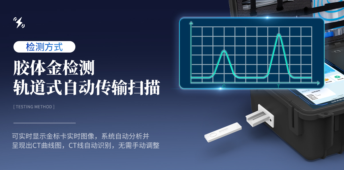 轨道式自动传输扫描方式,可实时显示金标卡实时图像,系统自动分析并呈现出CT曲线图,CT线自动识别,无需手动调整,完成检测后自动退出检测卡。