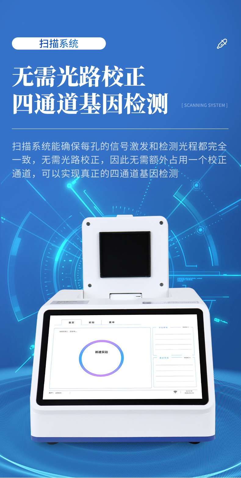 7、无需光路校正:扫描系统能确保每孔的信号激发和检测光程都完全一致,无需光路校正,因此无需额外占用一个校正通道,可以实现真正的四通道基因检测。★