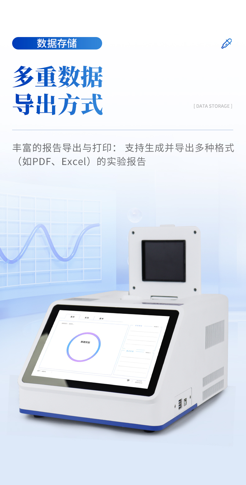 | 数据导出 | 可将实验结果以图形和表格的形式直接导出;详细的数据报告内容包括实验条件,数据坐标和表格,数据分析参数。 | |