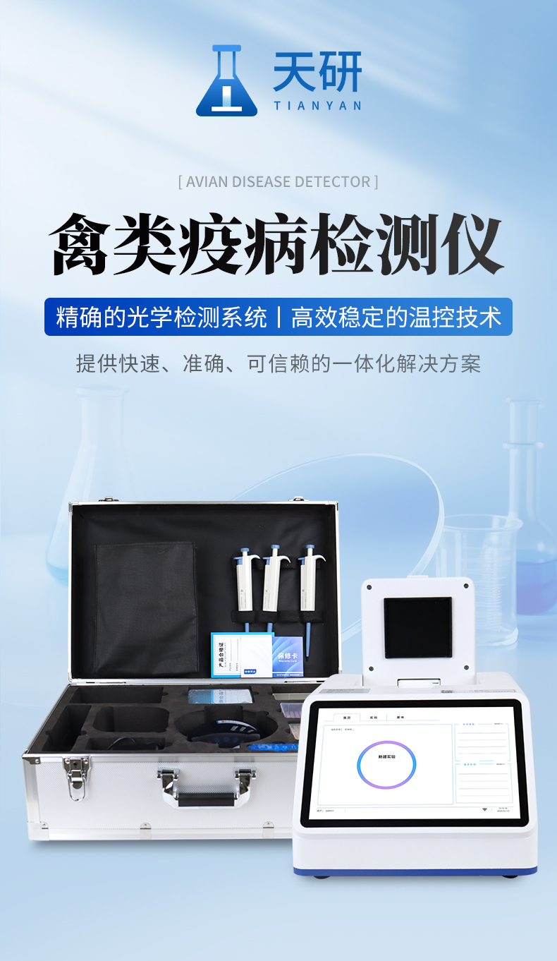 禽类疫病检测仪基于实时荧光定量PCR技术,聚焦动物体液、组织样本中病原体核酸精准检测。半导体温控确保扩增稳定,多通道并行,支持定性定量,适配实验室与养殖场现场。操作简捷,报告自动生成,助力疫病早筛早控,降低养殖风险。 作用领域:基础科学研究、病原体检测、宠物检测、养殖业疫病检测(牛羊、鸡鸭鹅等禽类、鱼虾等水产)