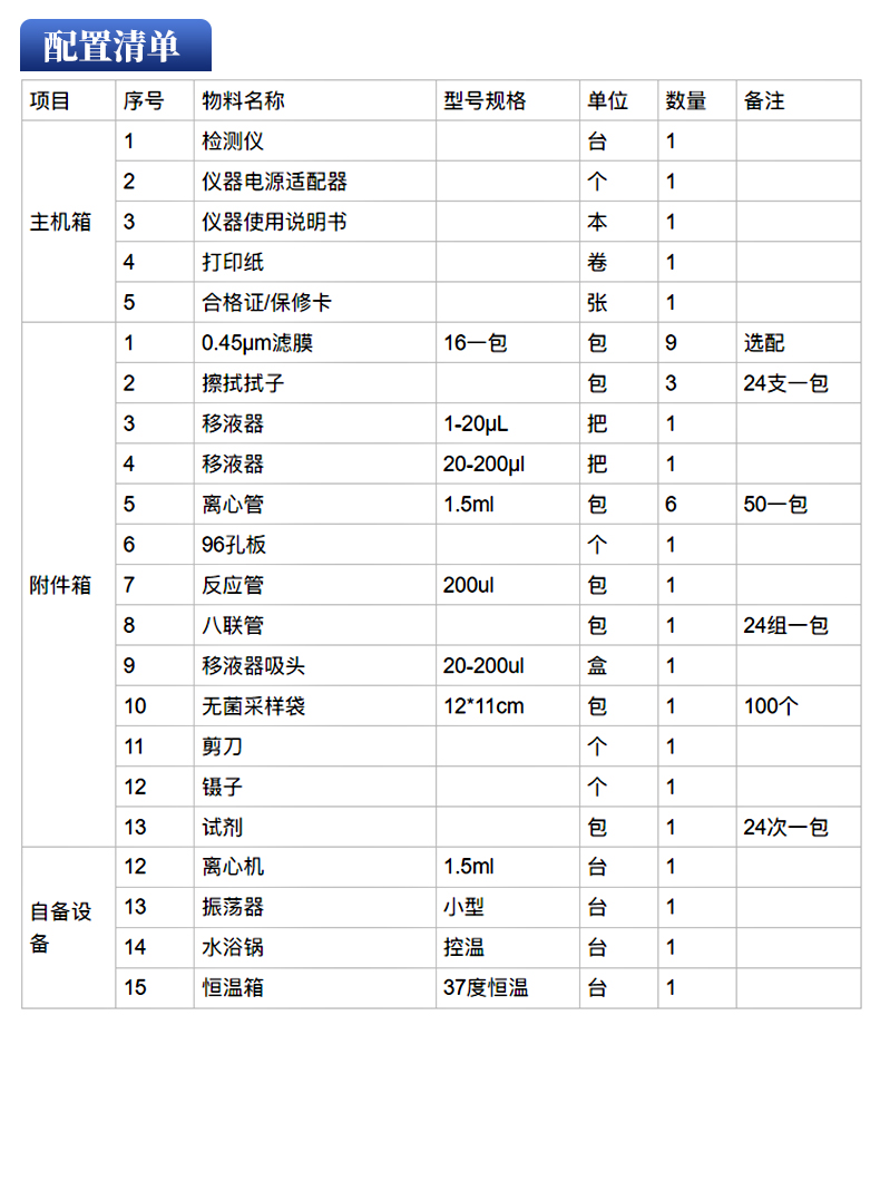 | 自备设备 | 1 | 离心机 | 1.5毫升 | 台 | 1 | ||