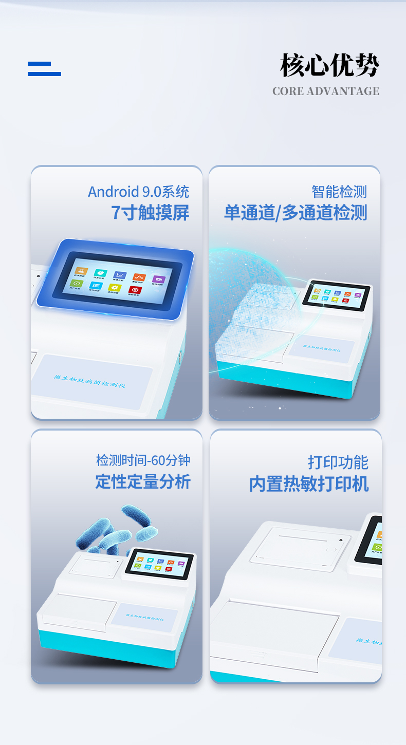 | 4. 智能检测 | 部分样品无需增菌,兼容单通道独立检测或多通道同时检测测试时间 |