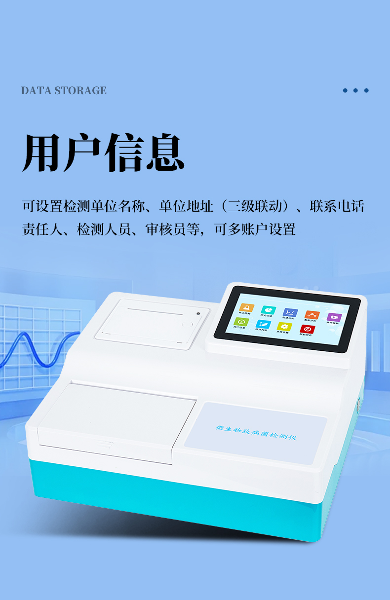 | 5. 用户信息 | 可设置检测单位名称、单位地址(三级联动)、联系电话、责任人、检测人员、审核员等,可多账户设置 |