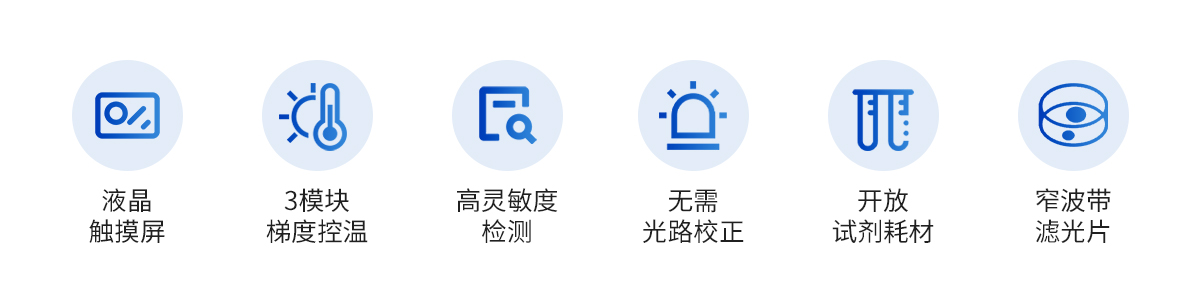| 分析算法 | 支持扩增曲线、标准曲线定量、熔解曲线、基因分型(SNP)、相对定量 |