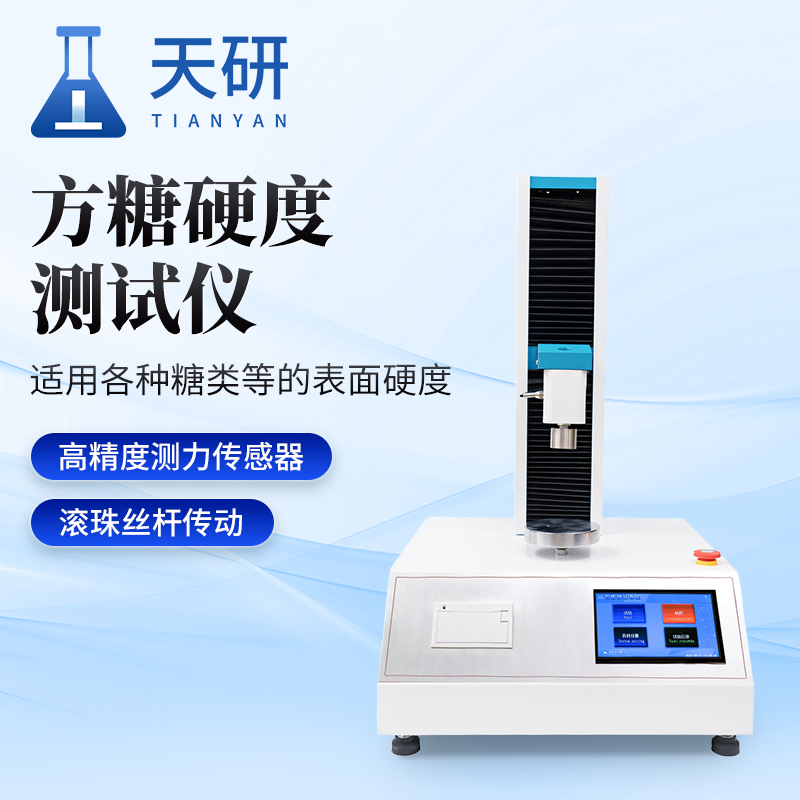 产品名称: 天研仪器 方糖硬度测试仪 产品介绍: 方糖硬度测试仪适用于各种糖类的表面硬度检测,涵盖乳脂糖、香脂糖、奶白糖、夹心糖等品类;搭配类同探头及试验模式,可开展多方向食品物性测试。糖与糖果主要成分为碳水化合物,部分含蛋白质、脂肪等营养物质,易出现吸潮溶化、氧化变质等