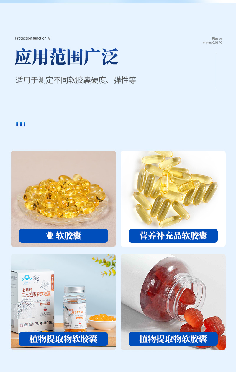 1. 胶囊壁强度:采用直径10mm或面积10mm²圆柱形探头进行穿透/压缩测试,测定软胶囊壁破裂力,定位明胶薄膜与密封弱点,模拟运输与包装破损风险。