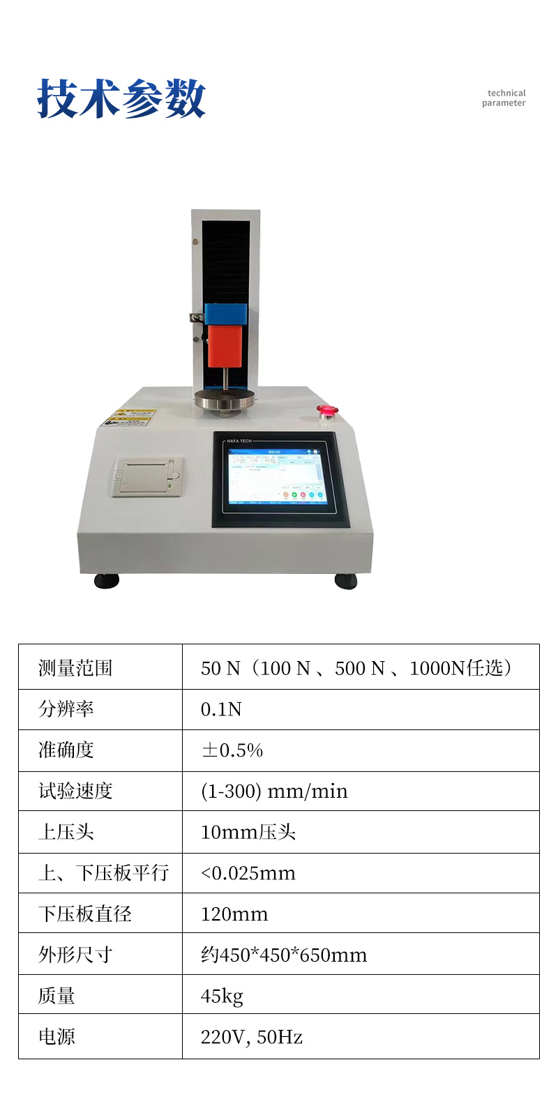1、测量范围:50N(100N、500N、1000N 可选)