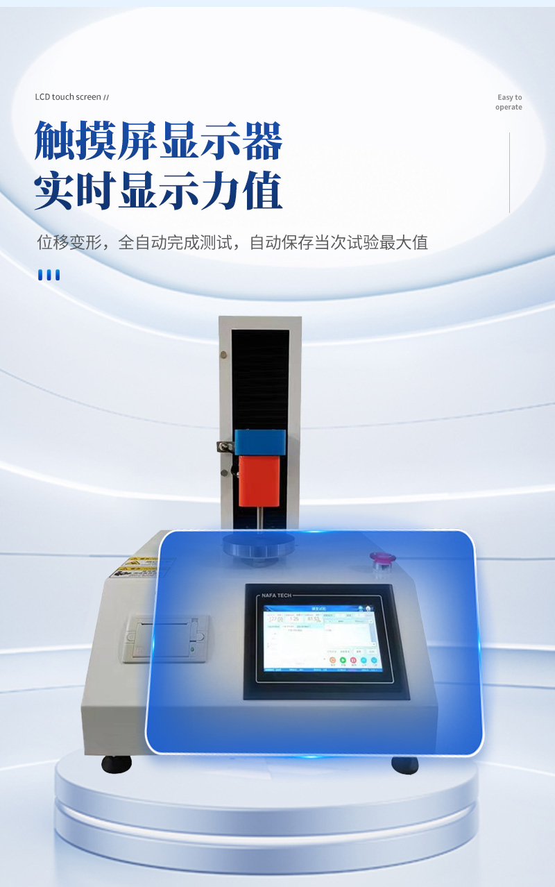 1、触摸屏实时显示力值、位移、变形量,全自动测试并自动保存试验最大值;实时显示试验曲线、速度、变形等参数。 2、采用高精度全数字调速系统与精密减速机,驱动精密丝杠副,试验速度范围宽、运行平稳。 3、搭载高精度传感器与专业测控软件,测试精度高、量程广、操作简便。 4、标配微型打印机,支持即时打印,可统计多次试验的最大值、最小值、平均值。 5、选配电脑后,曲线与数据同屏显示,力/时间/距离同步采集;支持数据无限存储、A4报告打印。 |