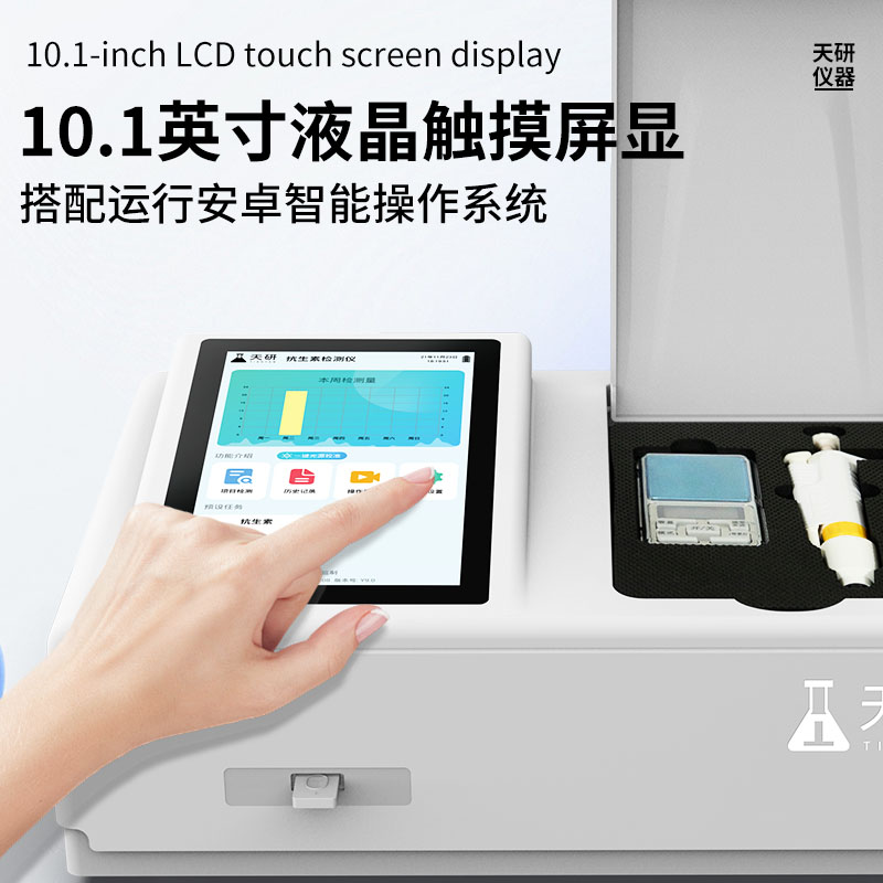 山东天研仪器有限公司 抗生素残留检测仪 检测项目: 可现场快速检测抗生素类残留、兽药残留、激素类残留、毒素类残留、化学类残留等多种项目。抗生素类:四环素类、硝基呋喃类、磺胺类、沙星类、喹诺酮类、氯霉素、庆大霉素、链霉素、喹乙醇代谢物、硫酸链霉素、羧苄青霉素、噻